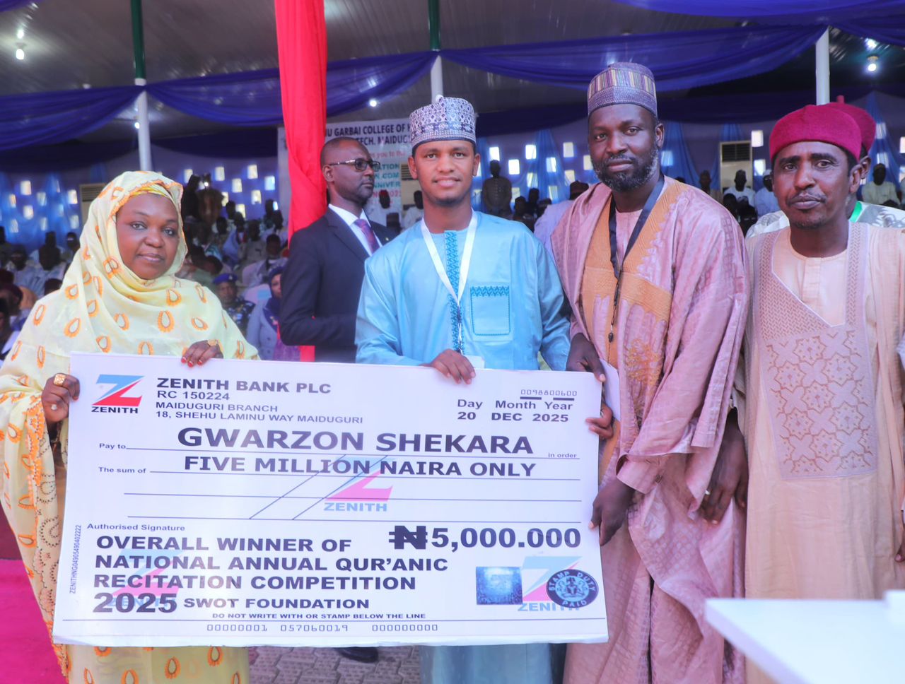 Goni Musa Hameed from Maiduguri , Borno State has emerged the overall winner of the 2025 National Qur’anic Recitation Competition, while Kano State clinched the overall best in the female category.
