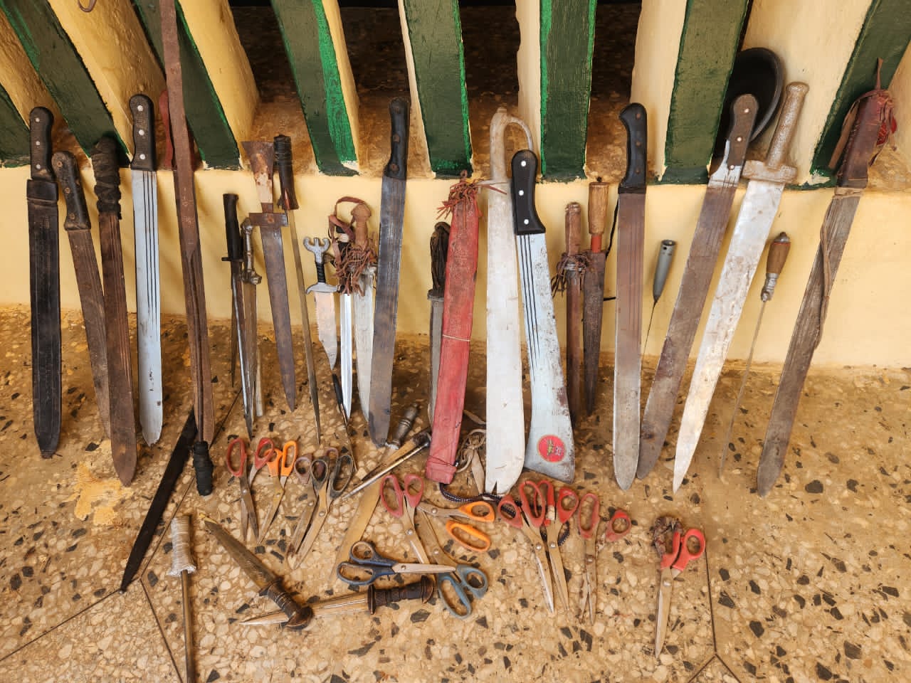 The police recovered a range of dangerous weapons, including knives, axes, and cutlasses.