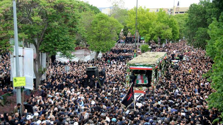 Millions of mourners flocked to a funeral procession in Tehran on Wednesday after the death of Iranian President, Ebrahim Raisi, in a helicopter accident, footage from local media showed.