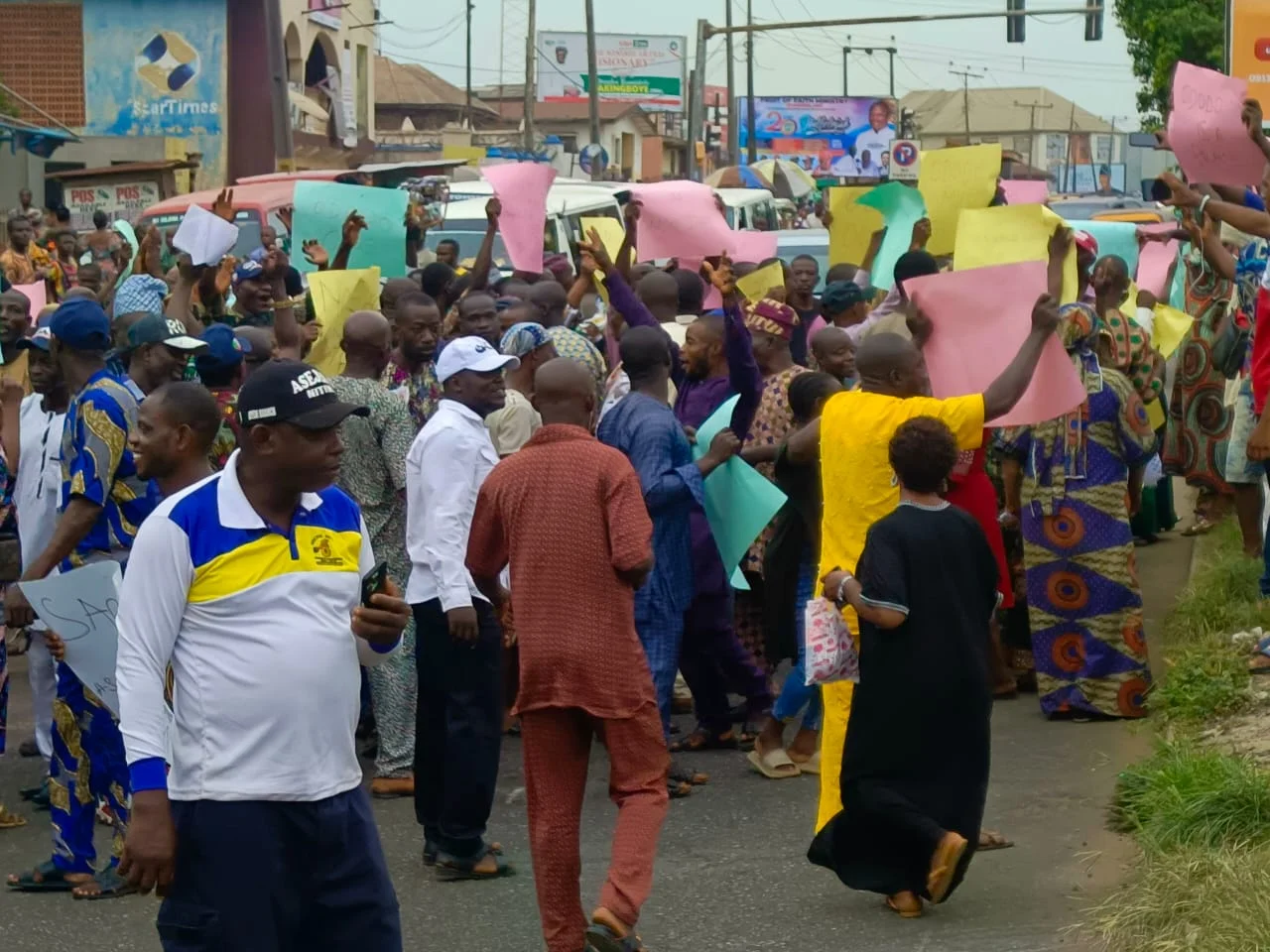The protesters with placards were singing solidarity songs leading to traffic gridlock on the busy Oba-Adesida/Oyemekun Road.