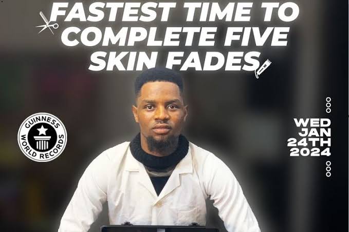 A 400-level student of the Department of Statistics, University of Ilorin (UNILORIN)g, Mr Qudus Owoyemi, has set a new world record for the fastest time devoted to completing five skin fade haircuts.